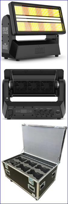 Color STRIKE M is an IP65 rated motorized strobe/wash with two ultra-bright, white light tube elements surrounded by an electrifying, color-mixing, and pixel-mappable face. This versatile strobe light can double as a wash fixture with 180° tilt range to throw bright saturated color wherever you need.