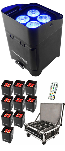 Freedom Par Quad-4 IP is a 100% TRUE wireless, battery-operated, quad-color (RGBA) LED Par with built-in D-Fi transceiver. Its temporary outdoor-rated robust housing repels water, snow, dirt, and sand for all-weather applications.