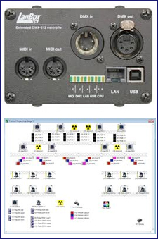 The LanBox-LCX is an autonomous and versatile DMX controller that can be implemented in almost every application that requires stand-alone operation of DMX lighting, MIDI, RS-232 and other equipment. The LanBox-LCX can be programmed and controlled using the free software LC-Edit for Mac and PC, or via third party software like Max/MSP, Isadora, Ableton or other software that allows programming of MIDI and TCP command.